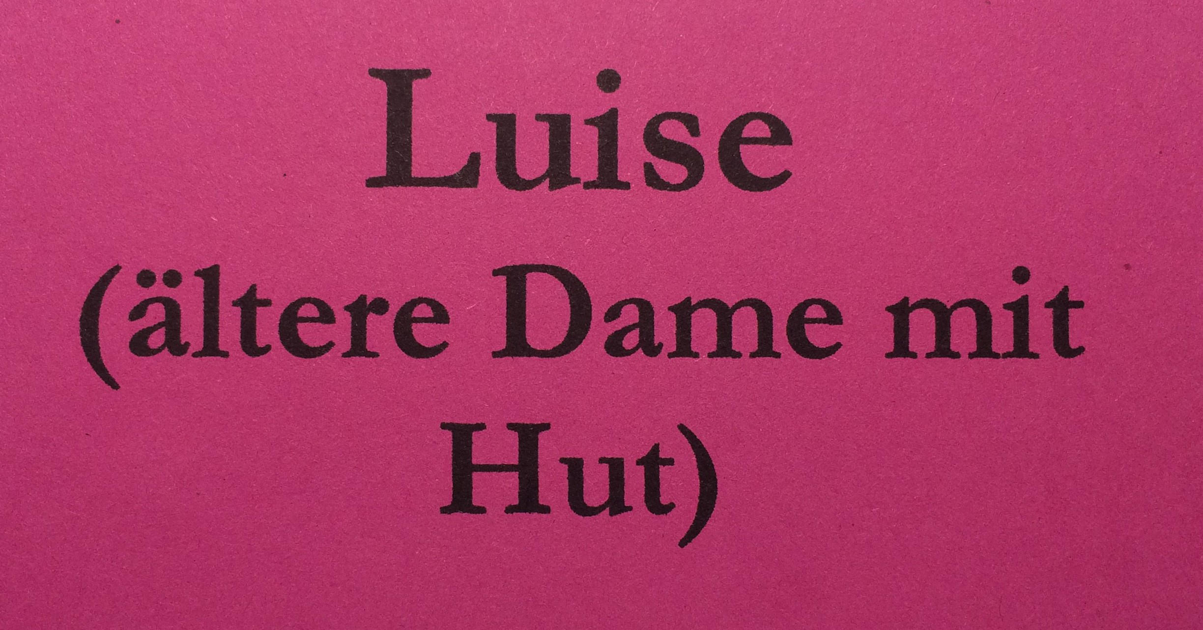 Alles ist erlaubt, was man darf. Alles ist erlaubt, was man kann. Egal wohin, diese Luise geht. Sie kommt an Punkte, die uns mehr oder weniger berühren. Berührt zu werden, bedeutet, dass wir inne halten. Es haftet an uns, in uns. Das schaffst Du. – Immer -.